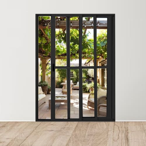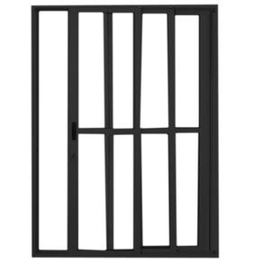 Você encontra essa porta da Linha 25 na cor preta e no tamanho de 210cm de altura, 180cm de largura, 11cm de espessura e 69kg. A porta apresenta 3 folhas, sendo duas fixas no lado direito e a terceira móvel com passagem no lado esquerdo.