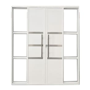 Esse produto fabricado em alumínio 3x mais pesado que o convencional, Linha Veneza, na cor branca, possui quatro folhas, sendo duas fixas de vidro e duas móveis em lambril com friso e pintura eletrostática branca. No tamanho 210cm de altura por 150cm de largura, com uma espessura de 8cm e um vão de 68cm, pesando cerca de 49kg.