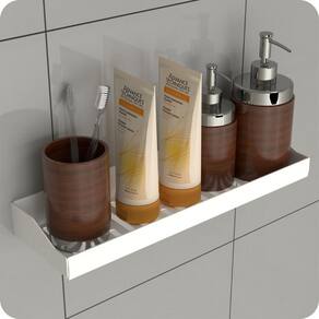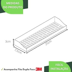 Porta Shampoo Adesivo Sem Furar Parede Branco DF O Porta Shampoo Adesivo Dupla Face foi projetado para quem não quer furar a parede e busca por qualidade na fixação e boa aderência em ambientes molhados. Prezando pela sofisticação e elegância, cada traço do produto foi cuidadosamente desenhado para deixar seu banheiro com um visual clean e sofisticado.