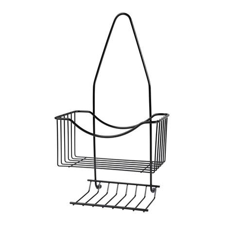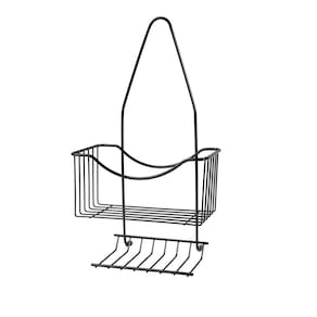 O cestinho acomoda shampoo, condicionador e outros itens, enquanto a parte inferior possui espaço para sabonete, garantindo funcionalidade e organização. Produzido em arame de aço com pintura epóxi preto brilhante, oferece resistência e durabilidade para uso diário.