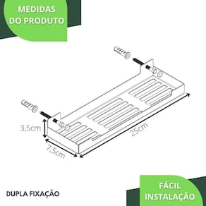 Com um design minimalista, o preferido pelos arquitetos nos últimos tempos, o Porta Shampoo é fabricado utilizando aço inox com acabamento em Pintura Eletrostática Epóxi proporcionando maior durabilidade, resistência e garantindo que não ocorrerá oxidação nem ferrugem.
