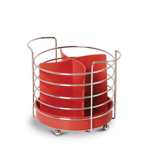 Da marca Niquelart, o Porta Talheres é feito em Aço Cromado e plastico 100% Virgem é fácil de limpar e possui um sistema com furos em sua base que evita o acúmulo de água.