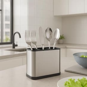 Transforme sua rotina na cozinha com este escorredor de talheres. Moderno, elegante e extremamente funcional, ele traz praticidade para o dia a dia e deixam sua bancada sempre organizada. Com design sofisticado e acabamento premium, os organizadores unem beleza e utilidade: o porta talheres, mantém tudo à mão de forma higiênica. Além de valorizar a decoração da sua cozinha, ainda ajuda a economizar espaço e manter a pia impecável. Ideal para quem busca praticidade sem abrir mão de estilo. Resistente, fácil de limpar e feito com inox de alta durabilidade. Um toque moderno que transforma qualquer ambiente em uma cozinha mais organizada e funcional. Escorredor de Talheres Material Estrutural: Inox escovado 150g + Polipropileno PP resistente 200g Acabamento: Aço inoxidável de alta resistência contra manchas e corrosão, divisórias internas em PP para separação dos talheres Tamanho: 18 cm altura x 8,3 cm largura x 13,2 cm comprimento Peso Total Aproximado: 350 g Funcionalidades: 4 divisórias internas para melhor organização de colheres, garfos e facas Base em PP antiderrapante que evita riscos na bancada Compacto e de fácil limpeza Ideal para manter os talheres sempre secos e prontos para uso Imagens ilustrativas.