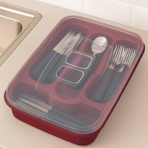 1 Porta-Talheres com Tampa e 4 Divisórias