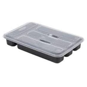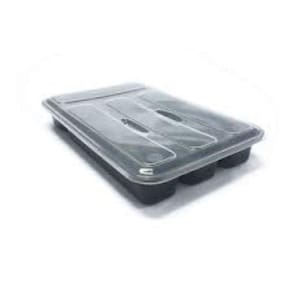 4 divisórias Resistente Garantia: 90 dias / Peso: 250 g / Cor: preto Dimensões: 22cm (C) x 32,5cm (L) x 5,5cm (A). Cuidados: Não lavar com materiais abrasivos. Não acompanha os talheres.