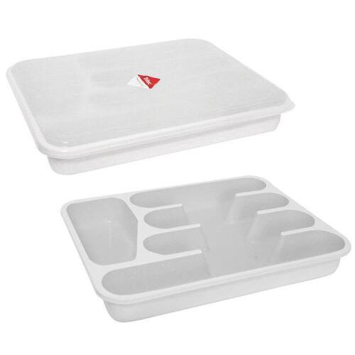 Porta Talheres De Gavetas Com Tampa E 5 Divisórias Tritec Prático e funcional porta talheres, armazena e conserva com segurança. Cinco divisórias para separar e organizar os talheres.