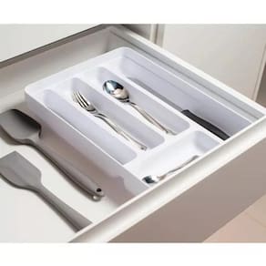 Os divisores de talheres são utensílios de cozinha ideais para ajudar a deixar as gavetas da cozinha sempre arrumadas.A principal função destes porta talheres de gaveta é organizar os talheres e deixá-los separados, protegidos e limpos, prontos para o uso. Fabricado em polipropileno, material com alta resistência a impactos e ao calor. Sua cozinha linda e Organizada com qualidade e sofisticação.