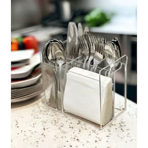 Projetados para simplificar a vida cotidiana, nossos porta talheres contam com 5 divisórias, sendo 4 para talheres e 1 para guardanapo. Eles ajudam a manter os talheres organizados, permitindo acesso fácil e uma apresentação sofisticada em qualquer ocasião.