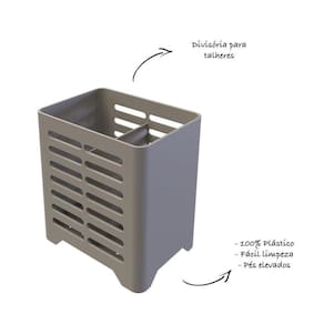 A utilização do ;Porta Talheres em Plástico é muito bem vinda quando o assunto é cozinha e banheiro, por se tratar de um produto sólido, ele evita a contaminação, transmissão e a proliferação de bactérias, insetos e roedores. Além disso, quem não gosta de um ambiente alegre e descontraído? O plástico, por se tratar de um material sólido, permite ousarmos nas cores da nossa decoração com diversos tons!