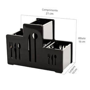 4. Qual o tamanho do porta talheres? Resposta: O porta talheres possui as seguintes dimensões: 16cm de altura, 10cm de largura e 21cm de comprimento.