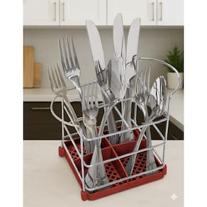 Confira e aproveite a praticidade do Porta Talheres Cromado e Vermelho da Utimil. Com design funcional e elegante, ele é perfeito para organizar seus talheres com estilo e eficiência.