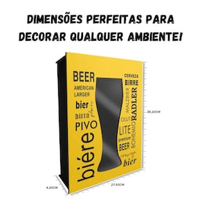 Porta Tampinha Copo Amarelo Cerveja Beer Decoração Cor: Amarelo Transforme suas lembranças de momentos especiais em uma obra de arte com nosso Quadro Porta Tampinhas Ideal para colecionadores e amantes de cerveja, este quadro com contorno de copo é uma maneira elegante e divertida de exibir suas tampinhas.