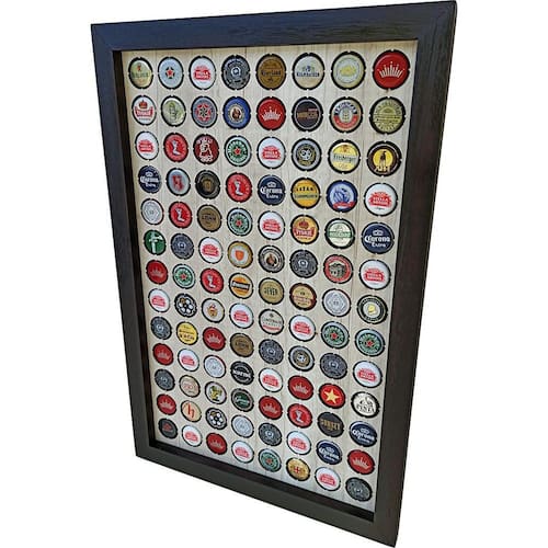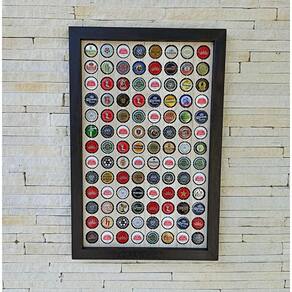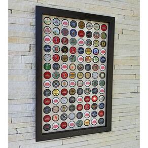 Escrita em auto relevo com letras coladas uma a uma Tampinhas com encaixe perfeito sem folgas . Acabamento perfeito realizado a laser. Capacidade para 104 tampinhas Na embalagem acompanha quadro e abridor anti-amassamento