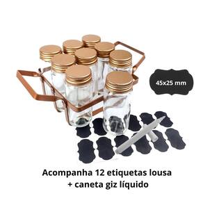 O suporte de tempero é feito de ferro com acabamento em pintura eletrostática de alta qualidade. Os 9 potes de tempero são feitos de plástico resistente, com tampa rosca metálica rose gold. Cada pote possui capacidade para 100ml, ideal para armazenar seus temperos favoritos.