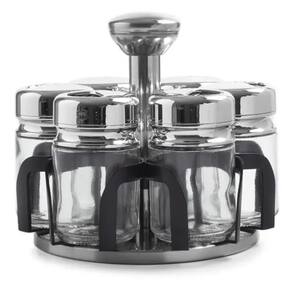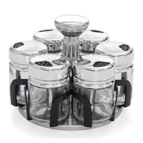 Material do Porta Condimentos: Aço Inox Material dos 6 Recipientes: Vidro Altura do Porta Condimentos: 15,5 cm Largura do Porta Condimentos: 17,5 cm Capacidade dos Potes: 120 ml cada Dimensão dos Recipientes: 9,5 cm x 5,5 cm