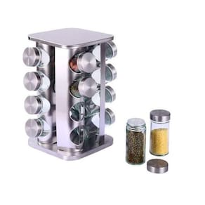 Tamanho da Embalagem: 27x20x20cm. Características:Possui base giratória: visualize todos os temperos com um simples giro Material: vidro e Aço Inox Possui 12 Potes de 80g - DE VIDRO.Estrutura Principal.Altura: 28cm
