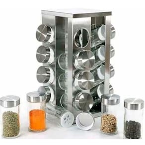 Características:Possui base giratória: visualize todos os temperos com um simples giro Material: vidro e Aço Inox Possui 12 Potes de 80g - DE VIDRO.Estrutura Principal.Altura: 28cm