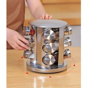 Possui base giratória: visualize todos os temperos com um simples giro Material: vidro e Aço Inox Possui 12 Potes de 80g
