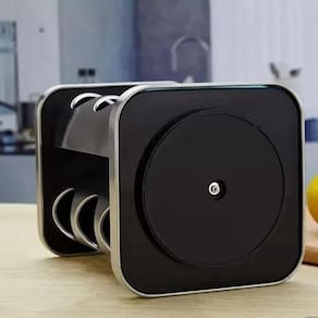A base rotativa permite um movimento de 360 graus, permitindo a fácil escolha do que precisa para dar a sua comida o melhor sabor. Cada frasco é equipado com uma peneira que permite um temperamento controlado e preciso, exatamente como deseja. Todos os temperos necessários à mão