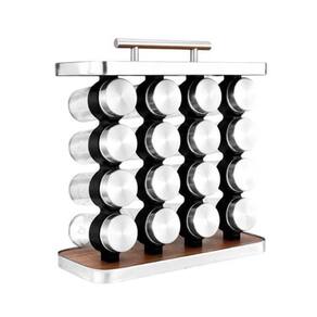 Porta Temperos Aço Inox e Madeira com 16 Potes de Vidro 80ml Porta Temperos Aço Inox e Madeira com 16 Potes de Vidro 80ml ===================================== Com estrutura em aço inoxidável de alta qualidade e detalhes em madeira, o design moderno em formato de torre otimiza o espaço, organiza seus temperos e ainda adiciona um toque de elegância ao ambiente.