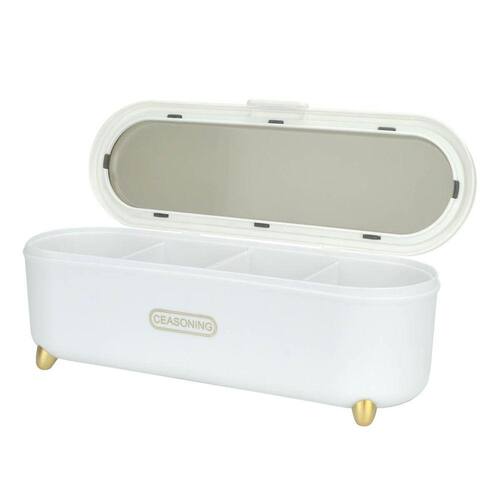 Porta Temperos Condimentos 4 Divisórias com Colheres e Tampa Cor: Branco PRINCIPAIS DESTAQUES - Capacidade para 4 Tipos de Temperos - Potes Removíveis - Tampa para Conservar o Aroma do Temperos - Charme e Praticidade Para Sua Cozinha - Medidas: 26,5cm x 8,5cm x 8,5cm Largura x Altura x Profundidade