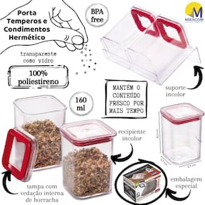 Mantenha seus temperos organizados com praticidade e um toque de elegância com este porta-condimentos com base suporte. O kit é composto por 2 potes com capacidade de 160ml cada, fabricados em poliestireno 100% transparente e livre de BPA, garantindo segurança no uso com alimentos e facilitando a visualização do conteúdo. As tampas herméticas ajudam a conservar melhor os aromas e sabores dos condimentos. A base inclinada proporciona um visual moderno e funcional, ideal para uso tanto no balcão quanto dentro da gaveta. Material: poliestireno Itens inclusos: - 2 porta condimentos com capacidade para 160ml. Comprimento: 5,9 cm / Largura: 5,9 cm / Altura: 8,3 cm - 1 suporte. Comprimento 13,1 cm / Largura: 13,6 cm / Altura: 7,4 cm