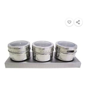 Porta temperos condimentos magnetico aço inox 316 - 3 peças Super kit com 3 porta temperos condimentos magnético inox 3 potes imã geladeira Totalmente em aço inox 316, maior qualidade edurabilidade Kit porta temperos condimento 3 potes aço inox magnético imã Este porta temprero veio pra trazer facilidade e estilo pra sua cozinha, podem ser fixados em geladeiras, freezers, fornos,micro-ondas, não deixa cheiro nem gosto. Com seu visor de acrílico facilita a visualizar o mantimento, com as cavidades diferenciadas para permitir a saída do tempero. Completamente desmontável para limpeza e uma vedação completa sem vazamentos.