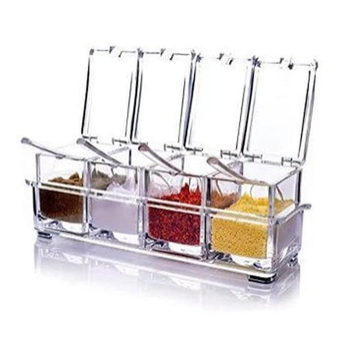 Porta Temperos E Condimentos Acrílico 4 Potes OrganizadoresIdeal para você que quer manter sua cozinha limpa e organizada, sem deixar os temperos e condimentos espalhados. Com tamanho ideal para suas necessidades.Tamanho:Comprimento: 8 cmLargura: 6 cmAltura: 7 cm Inclui:- 1 Porta temperos 4 em 1 - 4 Potes organizadores- 4 Colheres para temperos
