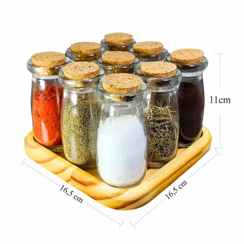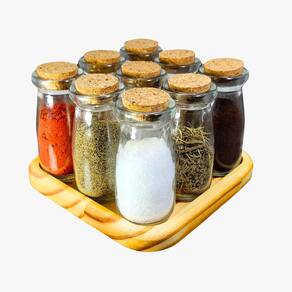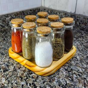 Com ele você pode armazenar seus temperos favoritos de forma organizada e prática. Cada pote de vidro possui uma capacidade de 110ml e é perfeito para armazenar temperos secos, como sal, pimenta, ervas e especiarias. A tampa de rolha em cortiça ajuda a preservar o aroma e o sabor dos seus temperos.