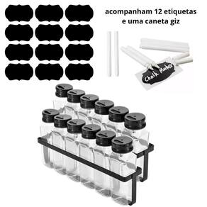 Porta temperos e condimentos cozinha com 12 potes de tempero A cozinha ao passar do tempo vem sendo um dos lugares mais importantes da casa, Para deixar ela mais moderna, elegante e prática o porta tempero é a solução, além de Organizar todos os seus temperos e especiarias também os conservam deixando tudo mais Fácil e em sua disposição na hora de cozinhar e arrasar nas receitas Comprando conosco você terá o melhor atendimento desde antes da compra e até o pós-compra, Conteúdo na embalagem - 2 suporte de tempero de ferro na cor preta - 1 par de parafuso/bucha para fixação - 12 potes de tempero de plástico com tampa dosadora dupla giratória - 1 barra para fixação do suporte - 12 etiquetas adesivas já com o nome dos temperos - caneta giz liquido branco Marca: Qualispice
