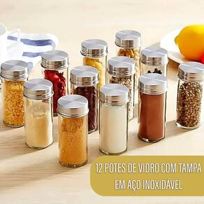 🧂 Chega de perder tempo procurando os temperos: visualize tudo com facilidade graças ao vidro transparente. Prepare receitas com mais agilidade e mantenha seus condimentos frescos por muito mais tempo! Cada detalhe foi pensado para trazer funcionalidade com design elegante 💎