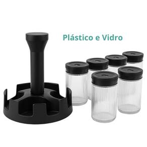 ? Marca: Belovidro ? Contém: 6 potes de vidro (capacidade 85ml cada) ? Material: Plástico e Vidro ? Base Giratória 360° ? Perfeito para organização e praticidade na cozinha ??