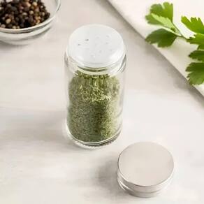 Os potes de vidro transparentes facilitam a identificação dos ingredientes,