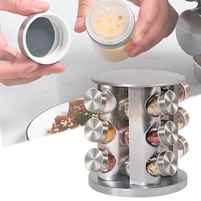 - 1x Porta Tempero Giratório com 12 potes de vidro.