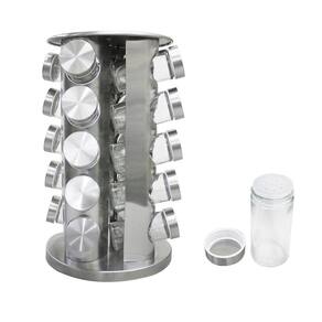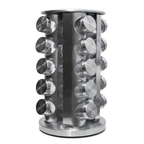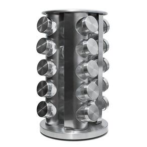 PORTA TEMPEROS DE VIDRO GIRATORIO COM SUPORTE EM INOX COM 20 PEÇAS - 765053.
