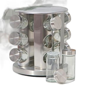 - 12 potes de vidro com tampas herméticas para manter os temperos frescos por mais tempo. - Base giratória 360 em aço inox, proporcionando fácil acesso e economia de espaço. - Design compacto e elegante, ideal para qualquer estilo de cozinha. - Material resistente e durável, garantindo longa vida útil ao produto. - Dimensões: 19 x 19 x 24 - Medidas Frascos: Altura 9,5cm x Diâmetro 4cm