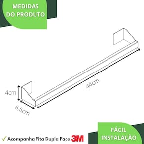 A fixação é feita com fita dupla face da marca 3M produzida sob medida personalizada para o produto, garantindo mais firmeza e estabilidade. Após remover a fita e colar o produto na parede, aguarde 20minutos e em seguida o produto já pode ser utilizado.