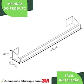 Porta Toalha de Banho Adesivo 3m Inox Banheiro De Parede DF O Porta Toalha de Banho Adesivo Dupla Face foi projetado para quem não quer furar a parede e busca por qualidade na fixação e boa aderência em ambientes molhados.Prezando pela sofisticação e elegância, cada traço do produto foi cuidadosamente desenhado para deixar seu banheiro com um visual clean e sofisticado. Com um design minimalista, o preferido pelos arquitetos nos últimos tempos, o Porta Toalha de Banho é fabricado utilizando aço inox com acabamento polido em alto brilho proporcionando maior durabilidade, resistência e garantindo que não ocorrerá oxidação nem ferrugem. A fixação é feita com fita dupla face da marca 3M produzida sob medida personalizada para o produto, garantindo mais firmeza e estabilidade. Após remover a fita e colar o produto na parede, aguarde 20minutos e em seguida o produto já pode ser utilizado. Seu processo de acabamento é feito em polimento de alta temperatura, o que garante um alto padrão de brilho, dando um toque especial na decoração do seu banheiro. BENEFÍCIOSFixação Extrema e PermanenteSubstitui Parafusos, sem fazer Furos e SujeirasAplicação Fácil, Rápida e SeguraAcabamento Premium: Corte Realizado à LaserMaterial de Aço InoxResistente a ÁguaNão Enferruja e não sofre oxidação ESPECIFICAÇÕES TÉCNICASMaterial: Aço InoxAcabamento: Polido em Alta TemperaturaCor: Alto BrilhoTipo de Fixação: Fita Dupla Face MEDIDASAltura: 5cmLargura: 44cmProfundidade: 5,5cm ITENS INCLUSOS1 Porta Toalha de Banho com Fita Dupla Face