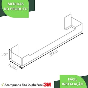 A fixação é feita com fita dupla face da marca 3M produzida sob medida personalizada para o produto, garantindo mais firmeza e estabilidade. Após remover a fita e colar o produto na parede, aguarde 20minutos e em seguida o produto já pode ser utilizado.