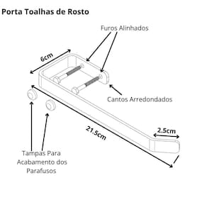 Porta Toalha de Rosto: Altura 1.6cm x Profundidade 6cm x Largura 21cm