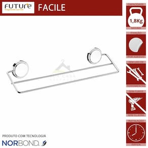 As toalhas de mãos e rosto ficam ainda mais destacadas em umToalheiro bonito e elegante..Fixação por adesivo, qualidade e tecnologia Norbond, semSujeira, não necessita de ferramentas e muito rápido Instalação:Correto: superfícies lisas, brilhantes e totalmente planas como vidros,Espelhos, azulejos, cerâmicas não porosas, pinturas lisas e brilhantes epóxi E laminados. Incorreto: superfícies curvas, foscas ou porosas como papel de parede, madeira,Parede de cimento, mármore, granito, etc. Especificações:Matéria-prima: Aço Carbono + Plástico Capacidade: 1,8 KgLinha: Facile Dicas de Uso:- Para limpeza periódica recomenda-se o uso de um pano macio,Água e sabão neutro.- Nunca utilize materiais abrasivos, lã de aço, esponjasÁsperas, solventes ou produtos químicos corrosivos cloro, água sanitária .