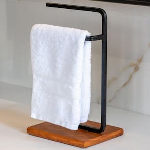 Porta Toalha Lovell Bancada Lavabo Base Madeira DHom, da linha level wood conta com um design moderno para deixar seu ambiente muito mais charmoso e elegante. Estrutura em aço maciço com pintura epóxi, porta toalha duplo, acabamento em preto fosco e base em madeira. Esse com certeza é o detalhe que estava faltando para dar aquele toque especial em sua decoração. Este móvel chegará na sua casa separado em 01 volume.