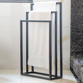 Maximize a organização do seu banheiro com o Porta Toalha para 3 Toalhas Eleganza de 50 cm em metal preto. Este elegante acessório não apenas otimiza o espaço, mas também acrescenta um toque contemporâneo à sua decoração. O acabamento em metal preto confere um visual sofisticado e moderno, tornando-o um destaque funcional no seu banheiro.
