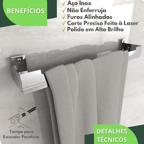 Com um design minimalista, o preferido pelos arquitetos nos últimos tempos, o Porta Toalha de Rosto é fabricado utilizando aço inox com acabamento polido em alto brilho proporcionando maior durabilidade, resistência e garantindo que não ocorrerá oxidação nem ferrugem.