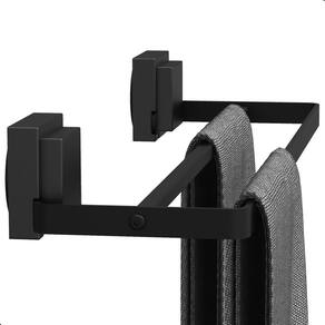Porta Toalha Suporte Toalheiro Com Ventosa Duplo Preto Max