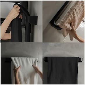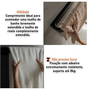 Suporte Porta Toalha Toalheiro 55cm de Parede Eleve Preto Com Adesivo