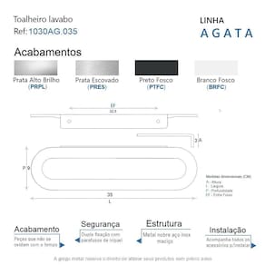 ITENS ENVIADOS: 1 toalheiro lavabo 35cm, kit de parafusos e manual instrução instalação.