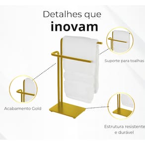 Elegância e praticidade para seu lavabo ou banheiro. Ideal para toalhas de rosto, possui base firme, estrutura resistente e acabamento dourado sofisticado que valoriza a decoração do ambiente.