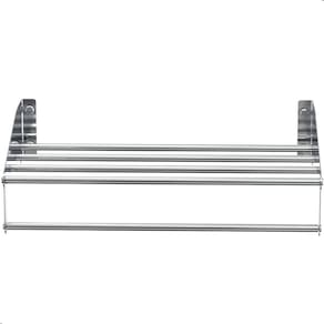 Unindo funcionalidade, durabilidade e design sofisticado, o Porta Toalhas De Banho Toalheiro Hotel Inox Tallin é a escolha ideal para quem valoriza organização com estilo, seja em residências modernas ou em ambientes de alto padrão, como hotéis e suítes premium.Combinando aço inoxidável e alumínio, dois materiais renomados por sua resistência e longevidade, o modelo Tallin foi desenvolvido especialmente para suportar o uso diário em ambientes úmidos, sem comprometer sua estética ao longo do tempo. O acabamento polido em alto brilho, somado ao corte a laser de alta precisão, garante linhas suaves, encaixe perfeito e visual contemporâneo.Durabilidade Excepcional: Fabricado em aço inox e alumínio de alta qualidade, o suporte é imune à corrosão e oxidação, mesmo em ambientes com alta umidade, como banheiros e lavabos.Estilo Premium com Corte a Laser: A tecnologia de corte a laser assegura bordas limpas, precisas e sem rebarbas. Resultado: um produto visualmente elegante, com encaixe perfeito e acabamento de alto padrão.Design Versátil e Sofisticado: Seu visual minimalista e moderno combina facilmente com diferentes estilos de decoração, valorizando o ambiente com um toque de requinte.Instalação Prática e Segura: Acompanha um kit completo de fixação com parafusos sextavados estrategicamente posicionados para facilitar o acesso com ferramentas. Além disso, possui tampas de acabamento que escondem os parafusos, garantindo um visual limpo e discreto.Superfície Higiênica e Fácil de Limpar: Sua estrutura lisa e uniforme evita o acúmulo de resíduos e facilita a limpeza diária, mantendo o brilho e a aparência de novo por muito mais tempo.Fixação Robusta: Conta com sistema duplo de fixação que oferece maior firmeza e segurança após instalado, mesmo com o uso contínuo.ESPECIFICAÇÕES TÉCNICASMaterial das Laterais: Aço inoxMaterial dos Tubos: AlumínioAcabamento: Polido Alto BrilhoFixação: Parafusos e buchas inclusosUso indicado: Residencial e comercial (hotéis, pousadas, etc.)MEDIDAS: Altura: 8,5cmLargura: 40,5cmProfundidade: 25cmPeso: 590gITENS INCLUSOS:1 - Porta Toalha de Hotel TallinParafusos e buchas para instalação.