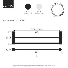 - O acessório porta toalhas duplo da linha ORION é a escolha perfeita para quem busca organização e funcionalidade, com seu design atemporal se destaca com minimalismo dando um toque de requinte no seu banheiro.